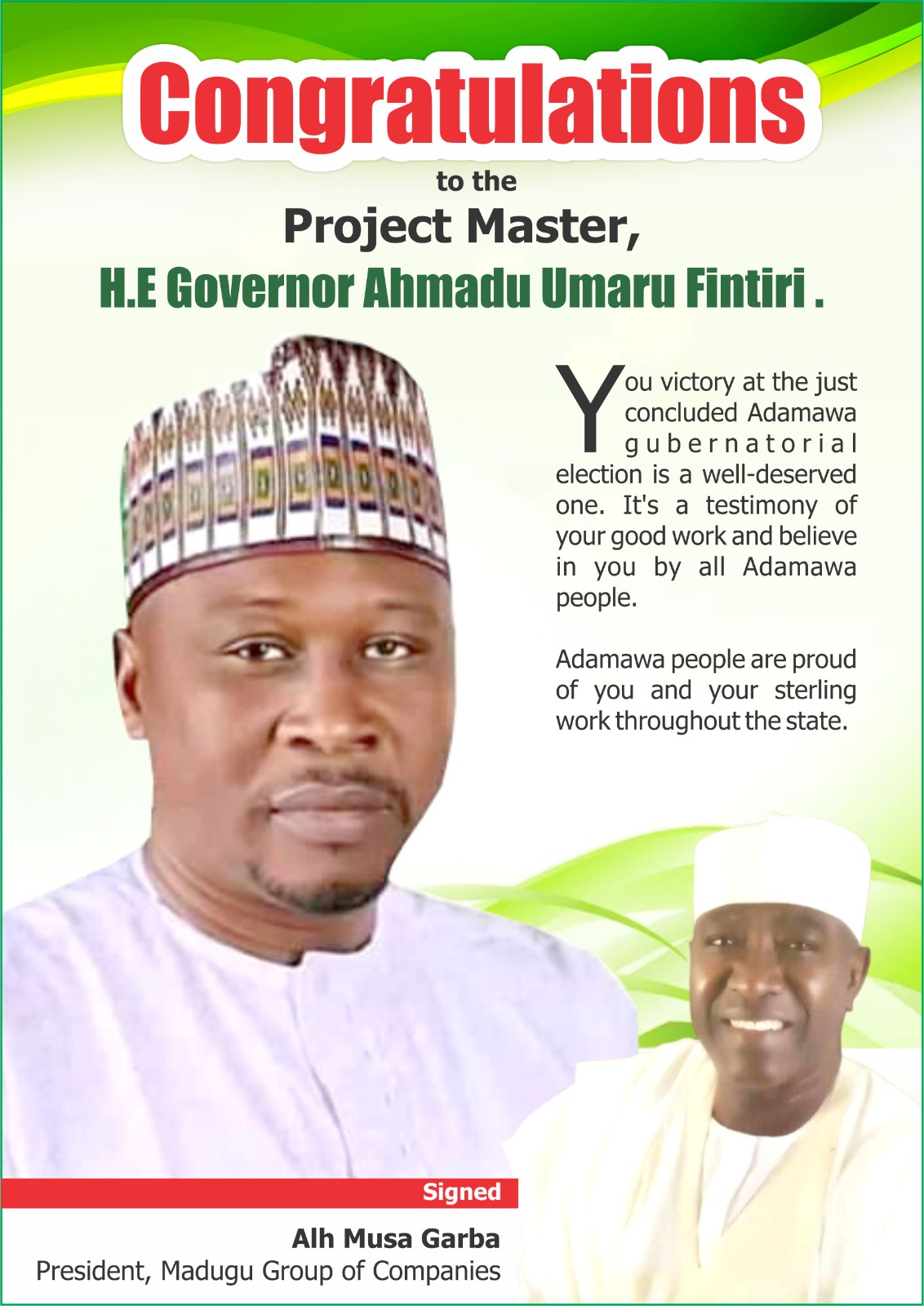 Heartfelt Congratulations to a Man of Honour, HON. HAMMA ADAMA ALI…