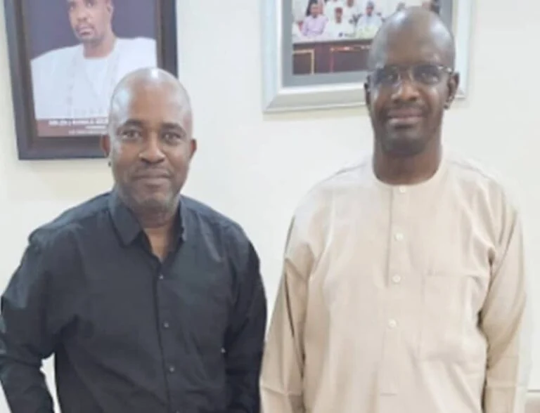 Chief Executive Officer of Petrosoft, Dr Joshua Denila, and Chairman of AA Rano Group, Alhaji Auwalu Rano, shortly after signing the deal. Photo: AA Rano