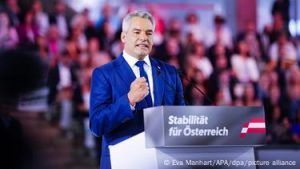 Polls put the conservative Austrian People’s Party (ÖVP), led by Chancellor Karl Nehammer, in second place on 25%.