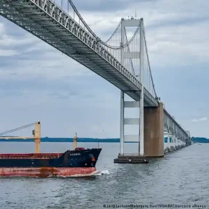 On March 26, the route was blocked by the wreckage of the bridge which collapsed after a cargo container ship lost control and collided with one of one of the bridge’s supporting columns, killing six people who had been working on the bridge road.