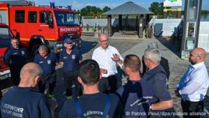 He toured Frankfurt an der Oder, not to be confused with Germany’s financial capital far to the west on the Main River, as officials try to shore up the Oder’s banks to reduce the risk of flooding.