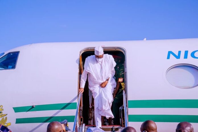The presidential aircraft conveying Buhari and some of his aides departed the Nnamdi Azikiwe International Airport Abuja at 9:10 a.m., on Monday, and landed at Prince Mohammed Bin Abdulaziz International Airport Madinah around 17:00 p.m. local time.