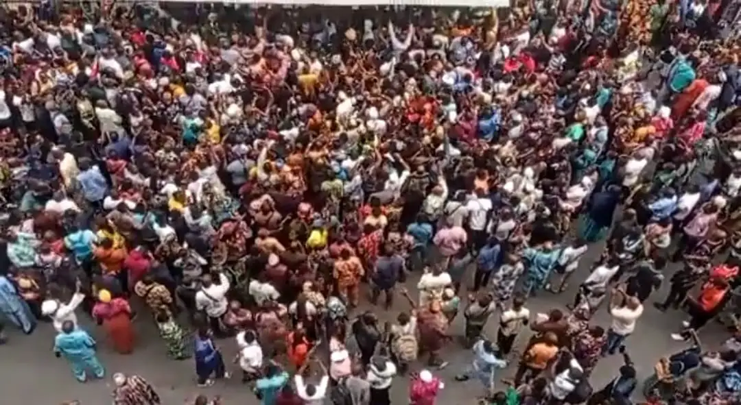 There is currently a large crowd at the office of the Central Bank of Nigeria (CBN) in Marina, Lagos.