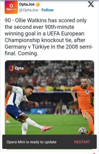Ollie Watkins scored a last-minute winner as England secured a 2-1 victory over the Netherlands to lead his side to the Euro 2024 final against Spain on Sunday at the Olympic Stadium in Berlin.