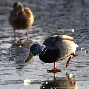 A fire department in the German state of Lower Saxony intervened when a duck’s feathers froze to the surface of a pond near a sewage treatment plant.