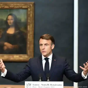 Standing in front of Leonardo da Vinci’s masterpiece, Macron said the Mona Lisa would be moved to a new room inside the museum.