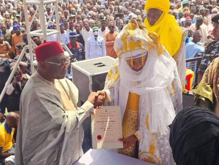 Thousands of Fufore indigenes and other Adamawa citizens gathered to witness a historic moment—the presentation of the Staff of Office to Alhaji Sani Ahmadu Ribadu, officially marking his installation as the first Emir of Fufore.