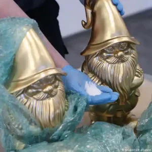 “Clear alterations to the feet of the unpacked golden garden gnomes led my colleagues to a total of around 25 kilograms of concealed ketamine,” said Jens Ahland, spokesperson for the Cologne main customs office.