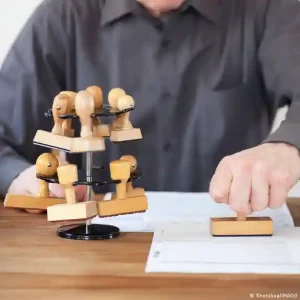 A hand rubber stamping a documentNearly a third of managers surveyed say bureaucracy has stayed the same