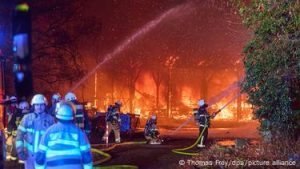 “At the site a large warehouse, storing timber among other things, was discovered fully ablaze,” Neuwied/Rhein police said in a statement. Affected locals were cleared from nearby homes by emergency services and the fire was brought under control, it said.