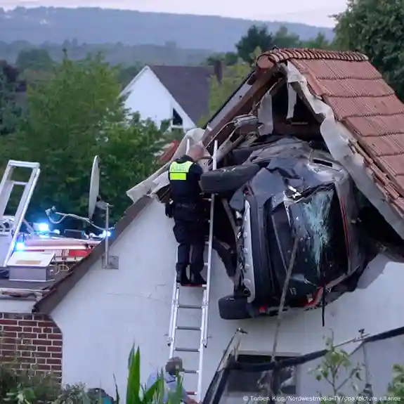 The small town of Bohmte near the city of Osnabrück in the northwestern German state of Lower Saxony was the scene of a spectacular accident on Saturday evening which has left two people seriously injured, including a seven-year-old boy.