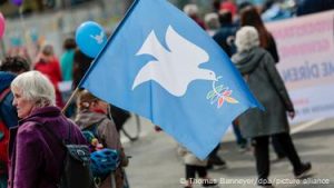 A spokesman for the group, Kristian Golla, said a focus of the demonstrations this year was an appeal to the incoming German coalition government for Germany to “become capable of peace rather than war.”
