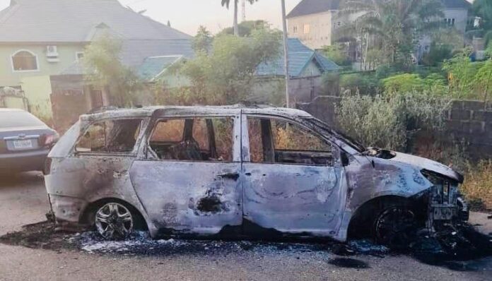 A car was said to have been set ablaze and burnt to ashes by the invading gunmen during the attack.