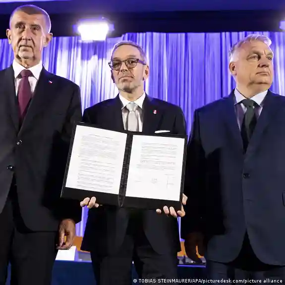 The three men didn’t answer questions from reporters but the FPÖ said a news conference would be held in Brussels or Strasbourg soon with other parties joining the alliance.