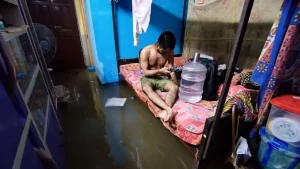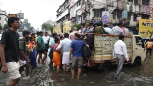 The flooding comes days before Durga Puja, the region’s biggest and most popular annual festival when tens of thousands come out to worship the Hindu goddess Durga.