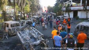 In Makassar, the biggest city on Indonesia’s central Sulawesi island, furious demonstrators torched vehicles and hurled rocks and Molotov cocktails, setting a local council building ablaze.