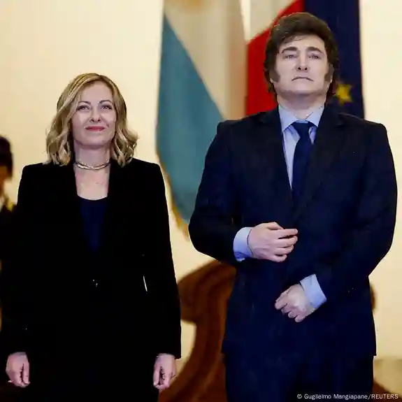 The two have established a close relationship, with Milei last month giving Meloni a statuette of himself brandishing a chainsaw — a reference to his political campaign rally posturing on public spending cuts.