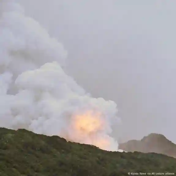 Footage on national broadcaster NHK showed towering balls of fire and white fumes rising from the site.