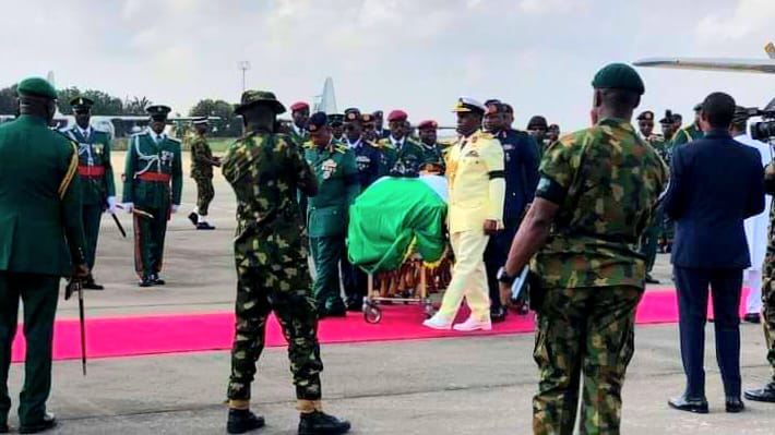 The remains of the late Chief of Army Staff, Lt Gen Taoreed Lagbaja, have arrived in Abuja in preparation for his final interment.