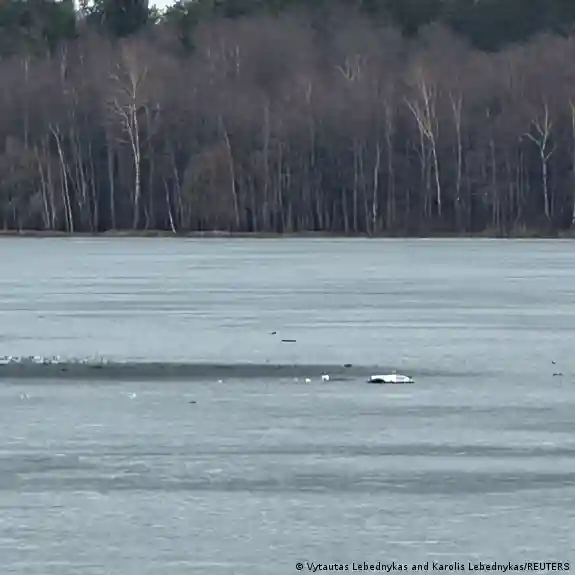 The drone crashed onto a frozen lake roughly 20 kilometers (12 miles) from the border to Belarus. Nobody was injured in the incident.