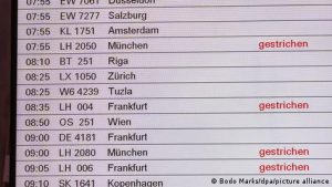 At its largest hub in Frankfurt, nearly 75% of some 350 scheduled Lufthansa departures were canceled.