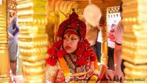 Kumaris are chosen from the Shakya clans of the Newar community, indigenous to the Kathmandu valley. They are revered by both Hindus and Buddhists in the predominantly Hindu nation of Nepal.