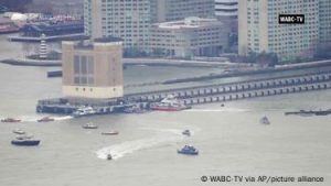 US broadcaster CBS reported the helicopter had been a tourist charter flight, which had flown over Governor’s Island and then near the Statue of Liberty.