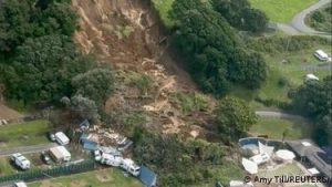 Heavy rains triggered a landslide at Mount Maunganui on the island’s east coast, bringing down soil and rubble at the site in the city of Tauranga. The campground was crowded with families on summer holidays.