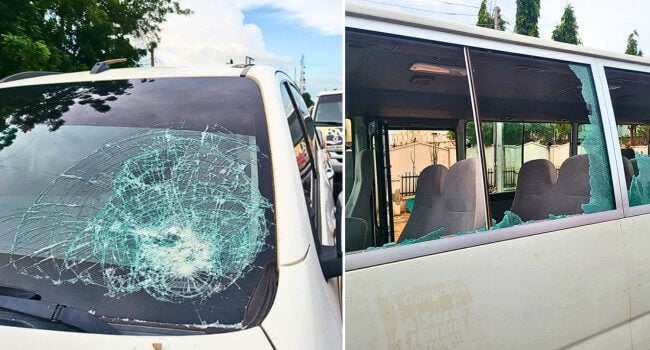 A member of the convoy who craved anonymity told LEADERSHIP that about 10 cars in the convoy were smashed, and many people in the convoy got various degrees of injuries in the attack.