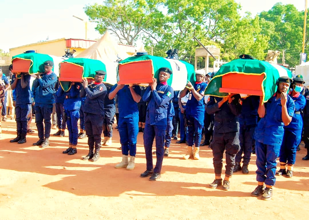 Commandant General of the Nigeria Security and Civil Defence Corps, (NSCDC), associate Professor Ahmed Audi, at the weekend laid to rest personnel of service ambushed and killed by terrorists last week while on the routine duty of protecting a mining site in Birnin Gwari Local Government Area, (LGA), of Kaduna State.