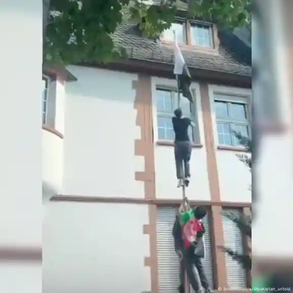 The foreign minister said Islamabad had lodged a “strong protest” with Germany’s government after a small group of protesters stole the Pakistani flag from the diplomatic mission.