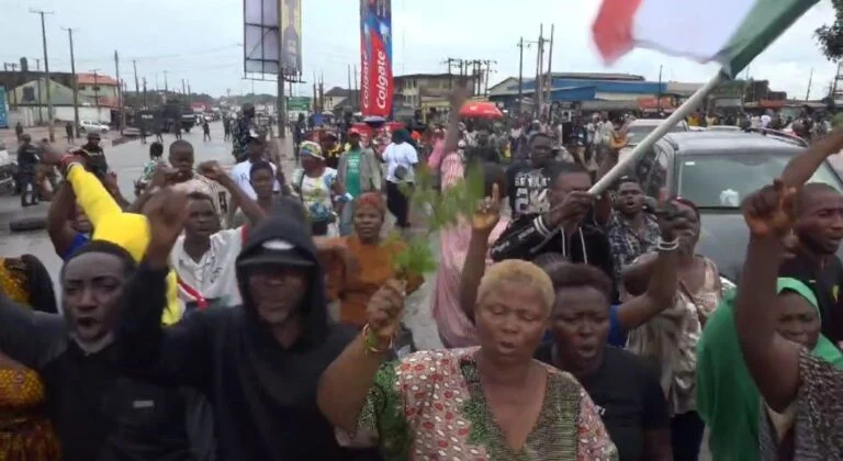 The demonstration took place near the headquarters of the Independent National Electoral Commission (INEC), where the results are being collated.