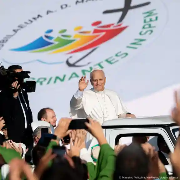 Leo, who arrived by helicopter and popemobile to cheers and applause, used his closing blessing to remember the young people of Gaza and Ukraine and other warring countries who could not join their celebration.