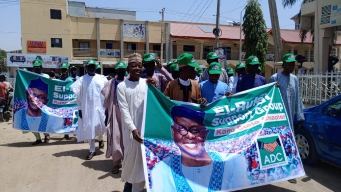 The demonstrators, led by leaders of coalition groups and members of the El-Rufai Support Group, gathered at the ADC state office in Kano to express concern over what they described as prolonged detention without trial.