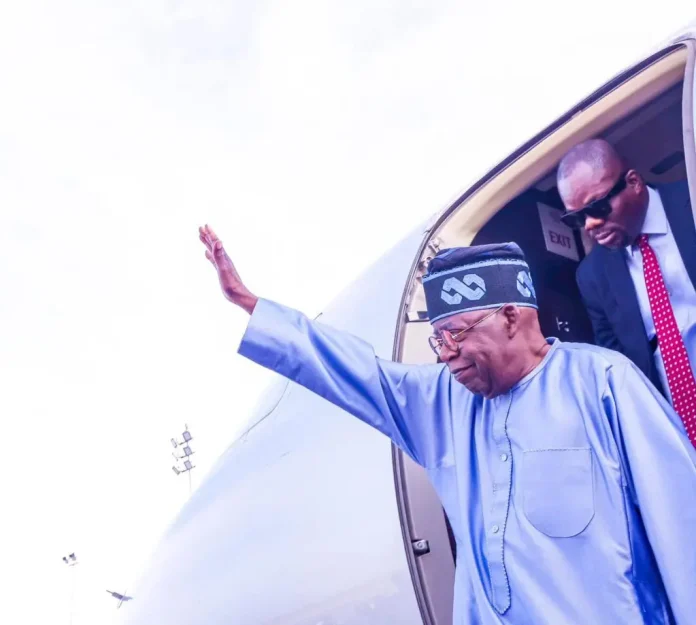 President Bola Tinubu has returned to Abuja after taking a two-week working leave in the United Kingdom. Tinubu, who arrived at the Presidential Wing of the Nnamdi Azikiwe International Airport, Abuja, around 7:20 pm, was received by senior members of his administration. The President departed for the two-week working vacation on Wednesday, October 2, as part of his annual leave, according to a statement by his Special Adviser on Information and Strategy, Bayo Onanuga. But on October 11, Tinubu left the UK for Paris, France, for an undisclosed engagement, according to his Senior Special Assistant on Political and Other Matters Ibrahim Kabir Masari. The President was received on arrival, among others by the Lagos Governor, Babajide Sanwo-Olu; Chief of Staff to the President, Femi Gbajabiamila; ministers Wale Edun (Finance) and Abubakar Atiku Bagudu (Budget and Economic Planning); Nuhu Ribadu (National Security Adviser); and Abdullahi Ganduje (national chairman of the ruling All Progressives Congress, APC). He is expected to resume duties at the presidency on Monday.