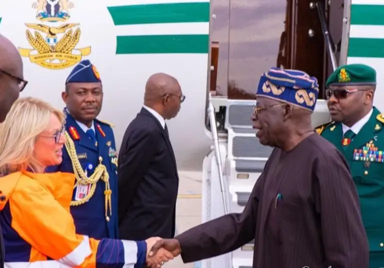 Tinubu was received by supporters and high-ranking members of the ruling All Progressives Congress (APC) including Governor Babajide Sanwo-Olu of Lagos state, amid warm display by colourful members of the Presidential Guards.
