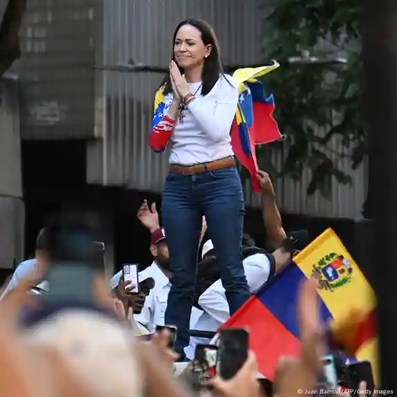 Maria Corina Machado was arrested while leaving a protest march, local media and party officials report. The opposition is back on the streets on the eve of Nicolas Maduro being sworn in for a third term.