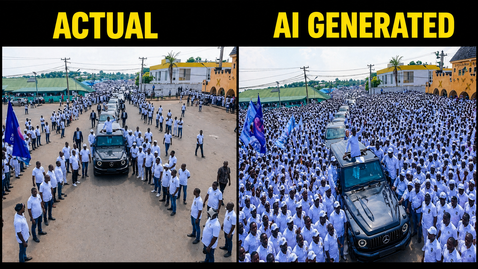 NewsWadada’s Campaign Caught Using an AI-Generated Crowd ImageBy TheAdmin - April 25, 2026027FacebookXPinterestWhatsApp Senator Aliyu Wadada’s Campaign Caught Using an AI-Generated Crowd Image in the Senator Thursday Homecoming rally. The AI generated image is generating controversy in the social media